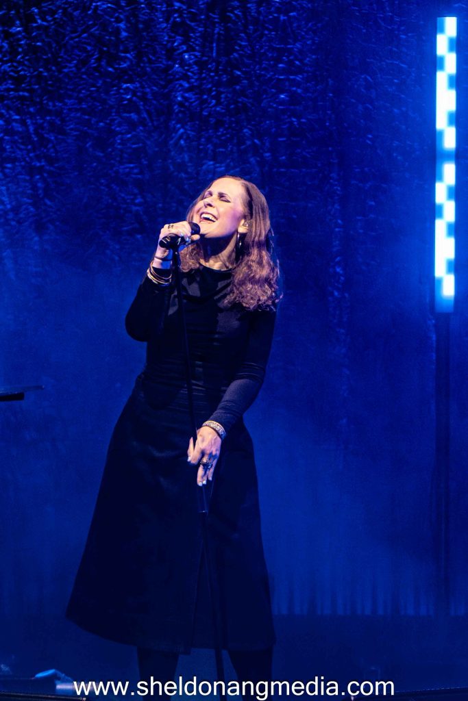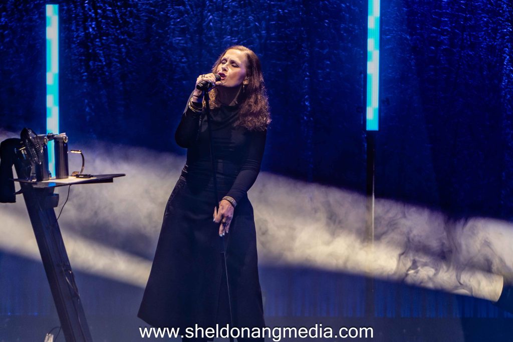 Moyet’s visceral touch to convey emotional depth tonight is vital to her heartfelt lyrics. The projection of Fire from her latest album Key is infused with nostalgia, tinged with longing and turmoil. She carries the weight of the song through her vocals and physical expulsion, her countenance reflecting the pain of longing. The thematic consistency across her repertoire is evident through the retrospective delivery. More, from her latest album, is a song of self-discovery, sung with a reflective tone and enhanced by Moyet’s signature soulful delivery.
