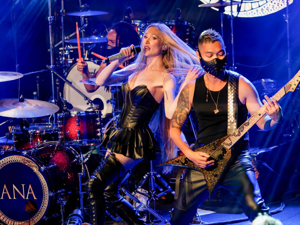 Marina quickly became the centre of gravity on stage. Watching her perform is genuinely captivating. Her voice carries both bite and elegance — gritty when the music needs muscle, but also capable of soaring into those huge melodic moments the genre thrives on.