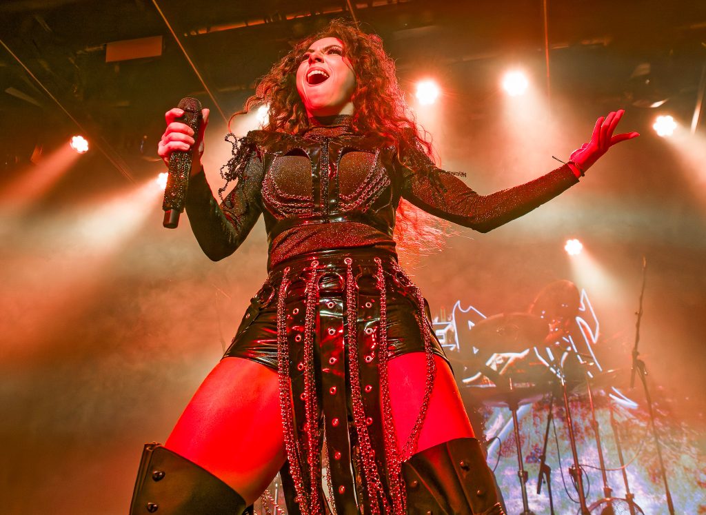 When the band stepped onto the stage, guitars roared, drums crashed in with that marching, thunder-metal punch and the entire room flipped instantly into full power-metal mode. At the centre of the storm stood vocalist Marina La Torraca, who wasted absolutely no time proving she wasn’t just filling a role — she was claiming it. One moment she’d unleash these huge, soaring notes that sliced through the wall of guitars, the next she’d flash this mischievous grin like the whole venue was hers and it basically was.