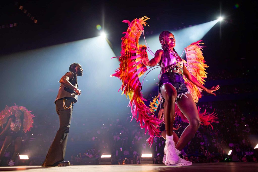 When J Hus’s familiar words ring out, the crowd knows it is time for the triumphant “City Boys”. The anthem of African pride pulses through every beat as the dancers amplify its bold, masculine energy. Burna’s deep baritone, commanding presence and diamond-flashed grin radiate pure joy and power.