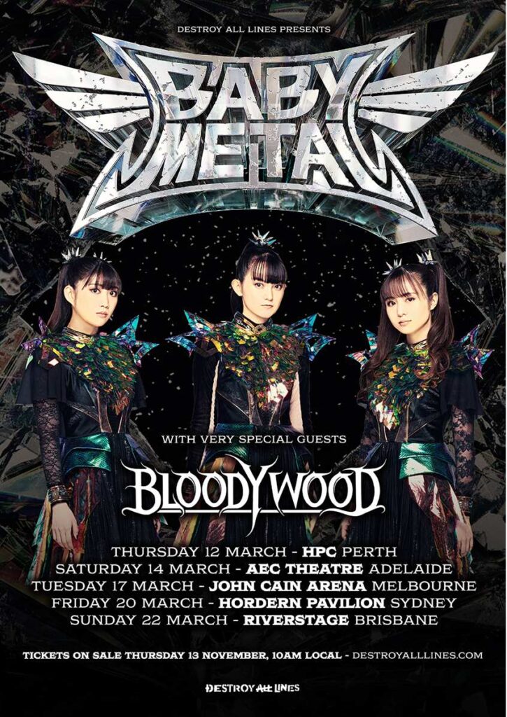 A dazzling global force to be reckoned with, in 2026 Metal sensations BABYMETAL are set to tour Australian arenas next March joined by Indian metal behemoths BLOODYWOOD.