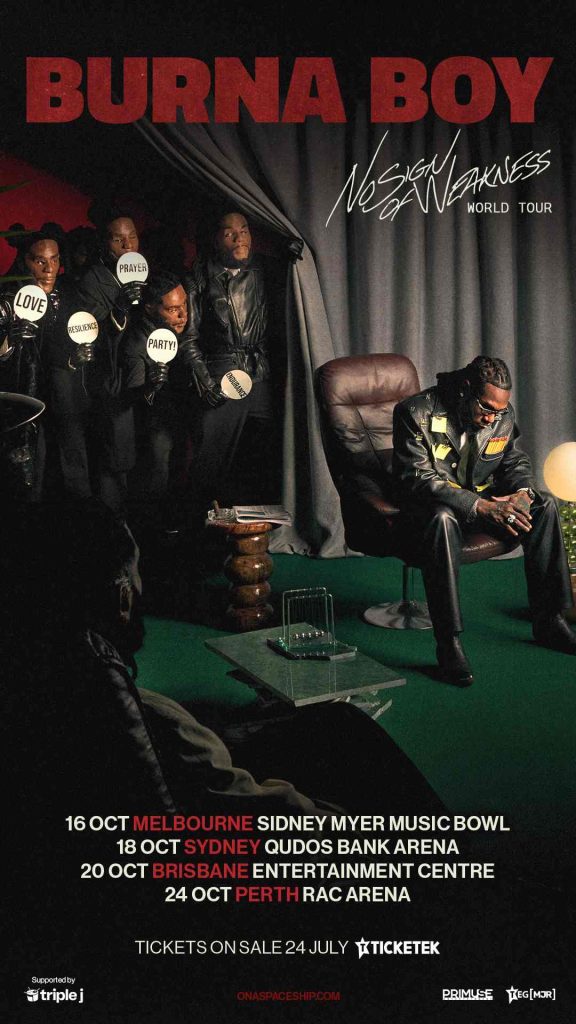 GRAMMY® Award-winning universal icon Burna Boy will celebrate his eagerly awaited eighth studio album, No Sign Of Weakness, with an epic global tour that will include Australia with four exhilarating shows at some of the country’s most credible venues.