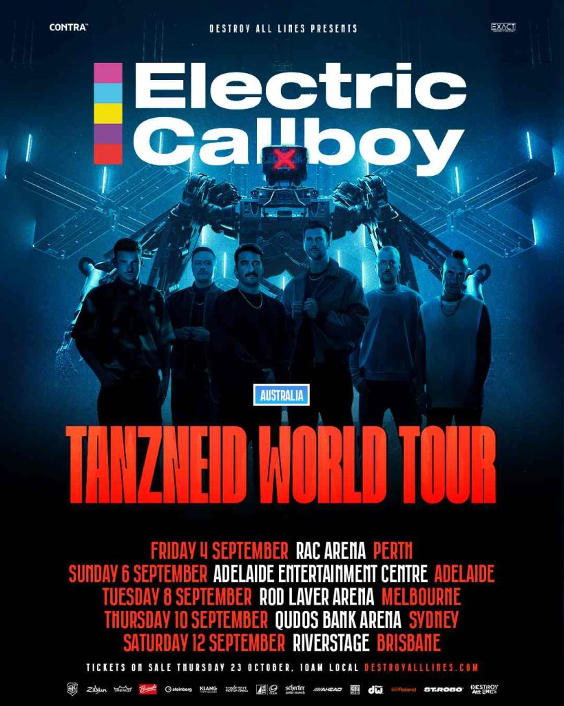 A cross-cultural cavalcade of theatricality, cinematic wizardry and genre-defiance, this unforgettable tour will commence on Friday 4 September in Perth before heading to Adelaide, Melbourne, Sydney and Brisbane, with the tour also marking ELECTRIC CALLBOY‘s largest Australian headline shows since their entirely sold out 2023 down under run.