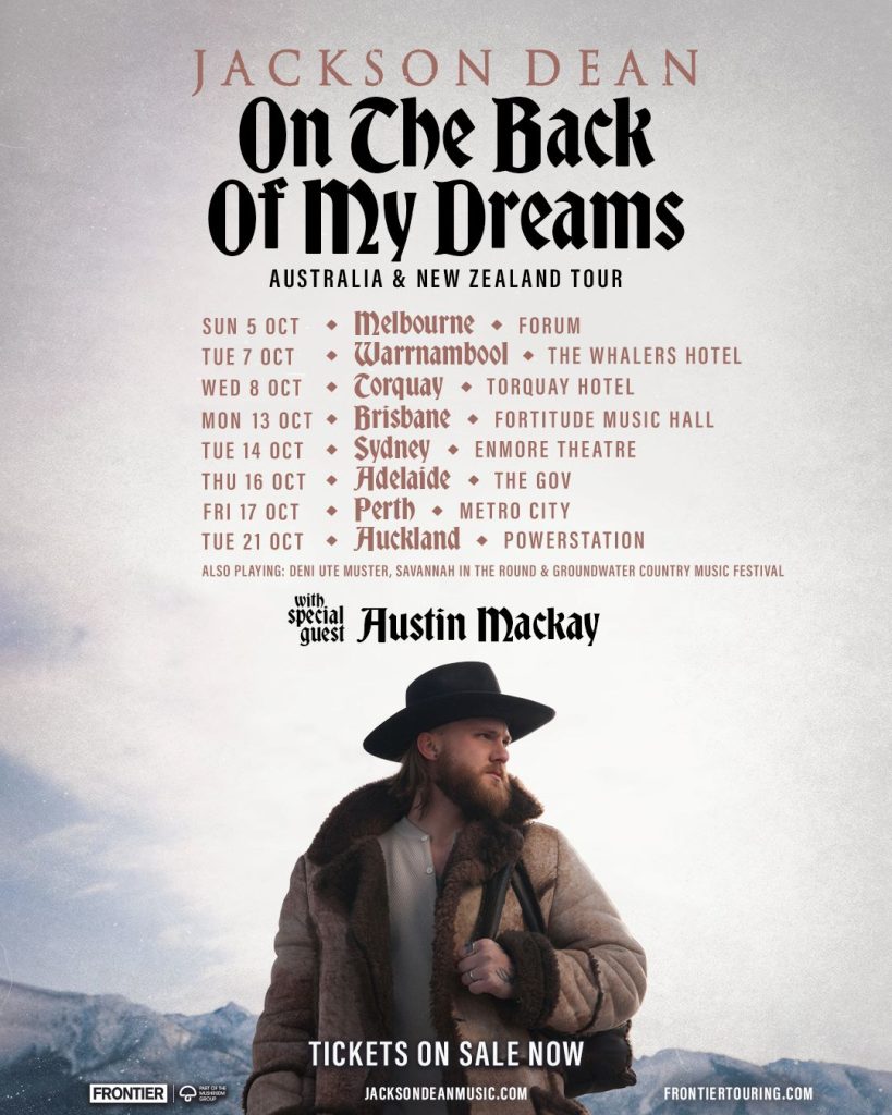 JACKSON DEAN (US) ANNOUNCES AU SINGER-SONGWRITER AUSTIN MACKAY AS SPECIAL GUEST FOR THE ON THE BACK OF MY DREAMS WORLD TOUR – OCTOBER 2025