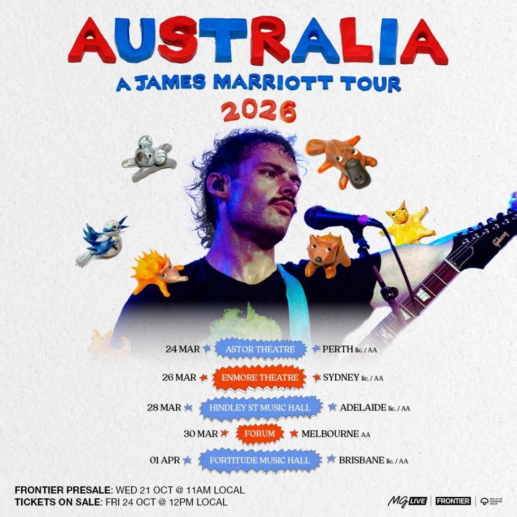 Tickets to James’ upcoming AU shows go on sale Friday 24 October (12pm local time) via frontiertouring.com/jamesmarriott. Frontier Members presale starts Tuesday 21 October (11am local time) – see website for more information.