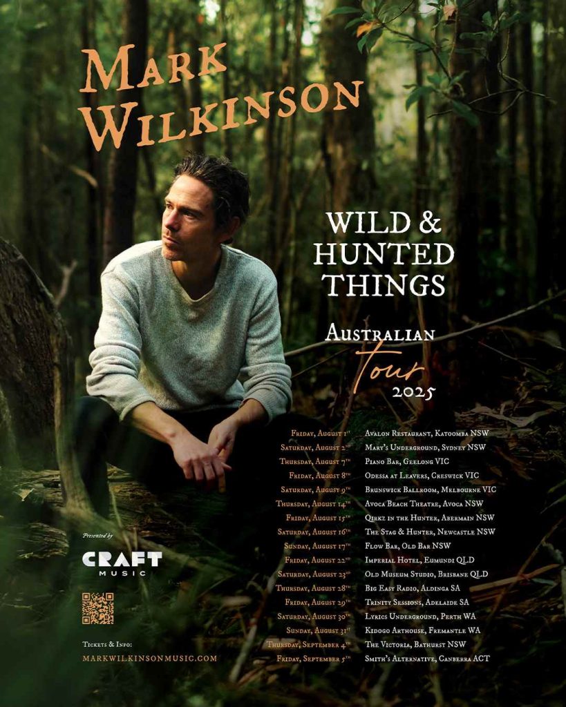 Australian singer-songwriter Mark Wilkinson is hitting the road this August and September, bringing his mesmerising brand of magic to the stage for the Wild & Hunted Things Tour!