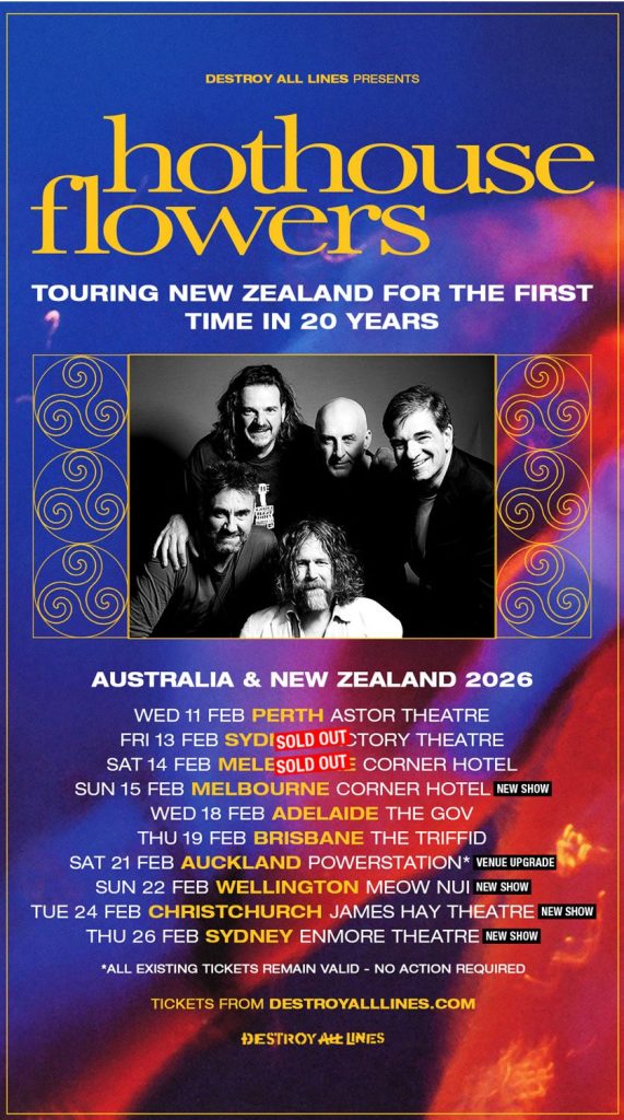 Renowned for their explosive blend of rock ‘n’ roll, Irish folk and American gospel, Ireland’s legendary Hothouse Flowers, are set to return to Australia and New Zealand for the first time in 20 long years for a highly anticipated tour in February 2026.